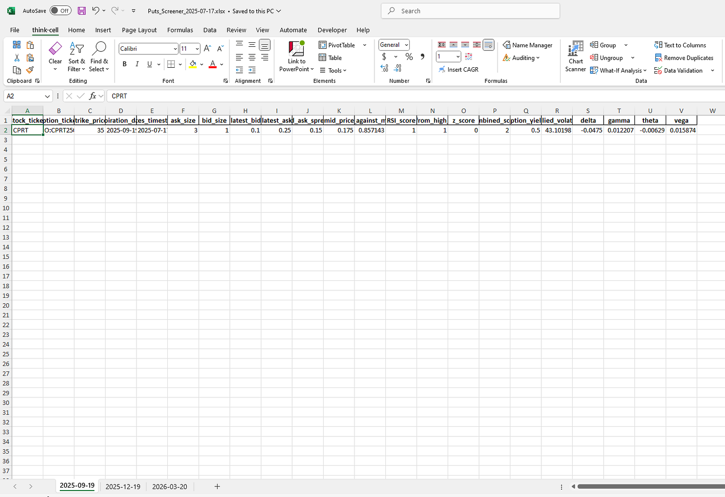 Retrieve the output Excel file from the `excel_output` folder (filename: `Puts_Screener_{date}.xlsx`)